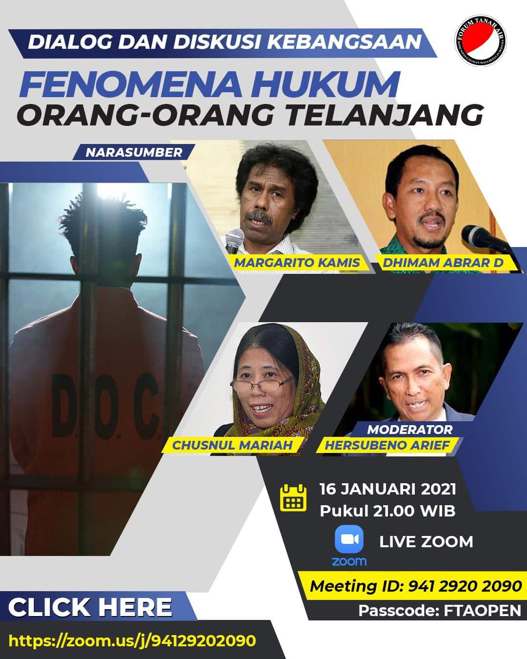 Forum Tanah Air kembali mengadakan acara bulanan “Dialog dan Diskusi Kebangsaan”, kali ini dengan tema II Fenomena Hukum Yang Telanjang”