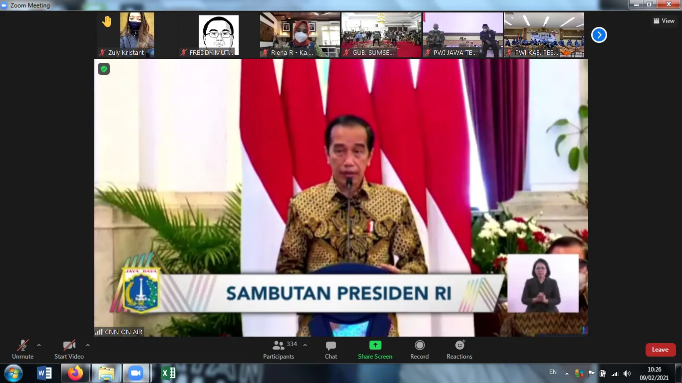 KEMPALAN-JAKARTA: Presiden Joko Widodo mengatakan bahwa insan pers adalah kelompok garda terdepan dalam penangan Covid-19. “Saya tahu pada era pandemi ini rekan-rekan pers tetap bekerja dan berada di garis terdepan untuk menyampaikan informasi terkait Covid,” ujar Presiden Joko Widodo saat memberi sambutan terkait peringatan Hari Pers Nasional (HPN) 2021 yang berlangsung dari Istana Merdeka, Selasa (9/2) dan diikuti komponen pers dari Ancol, Jakarta Utara, dan seluruh provinsi di Indonesia secara virtual.