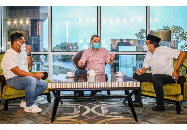 Tiga kepala daerah terpilih itu adalah wali kota terpilih Surabaya Eri Cahyadi, bupati terpilih Sidoarjo Ahmad Muhdlor, dan bupati terpilih Gresik Fandi Akhmad Yani. Tiga pemimpin tersebut berdiskusi selama dua jam untuk membahas banyak hal.