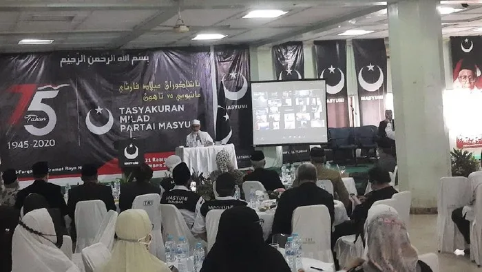 JAKARTA-KEMPALAN: Partai Masyumi reborn dideklarasikan di Jakarta, Sabtu (3/4/2021). Partai yang pernah berjaya di era Orde Lama itu, dipimpin oleh Ahmad Yani sebagai ketua umum. Sementara duduk sebagai Ketua Majelis Syuro mantan penasihat Komisi Pemberantasan Korupsi (KPK) Abdullah Hehamahua.