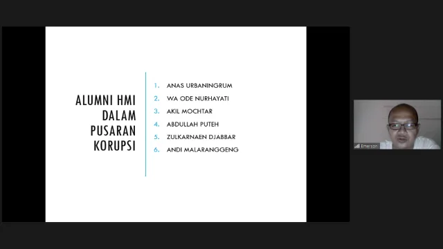 “Pak Artidjo kalau pelakunya HMI malah dikasih lebih berat karena mencederai nilai-nilai HMI,” tutur Emerson ketika menjelaskan tentang figur-figur alumni HMI yang berkecimpung di dunia anti-korupsi selain dirinya. Salah satu kasus korupsi yang dihadapi oleh Artidjo adalah Anas Urbaningrum yang justru mendapat masa tahanan yang bertambah ketika banding.