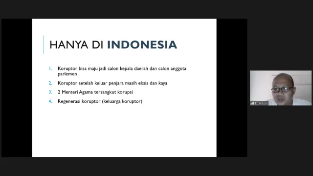 “Dengan adanya undang-undang KPK yang baru, ada dewan pengawas… yang kemudian bisa menjadi penghambat,” menurut Emerson, karena bisa melemahkan kinerja KPK akibat intervensi politik dan political will yang rendah.
