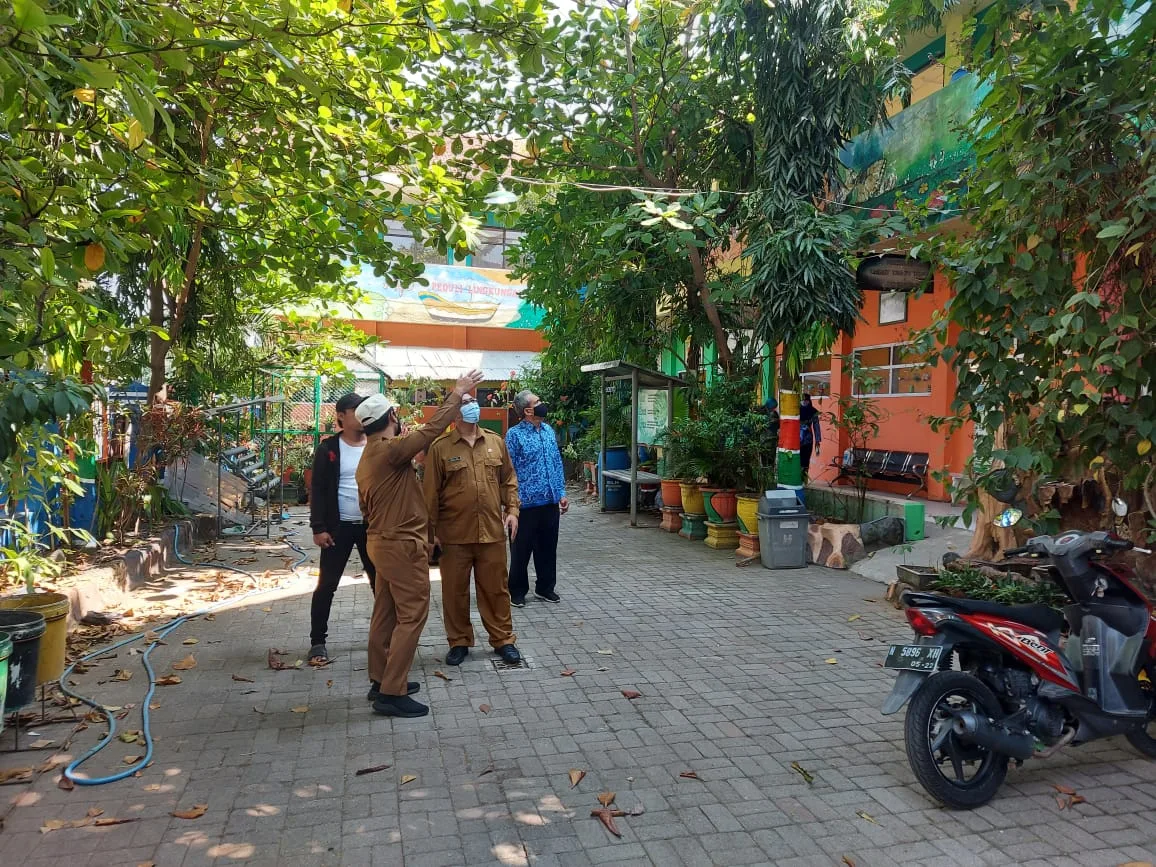 KOTA PASURUAN-KEMPALAN: Wawali kota Pasuruan Adi Wibowo menggelar inspeksi mendadak (sidak) ke sejumlah sekolah dasar dan menengah di wilayah kota Pasuruan, Senin (17/5). Kegiatan hari pertama setelah lebaran ini dilakukannya guna melihat sekaligus mengevaluasi kesiapan fisik dan infrastruktur sekolah menjelang pembelajaran luar lingkaran (luring).