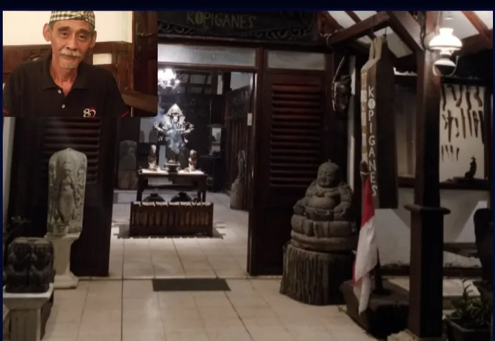 Puluhan keris sengaja dipajangnya untuk memperkuat kesan tempo doeloe Kopiganes. Begitu pula patung-patung jadul menghiasi beberapa sudut tempat kuliner yang satu ini.