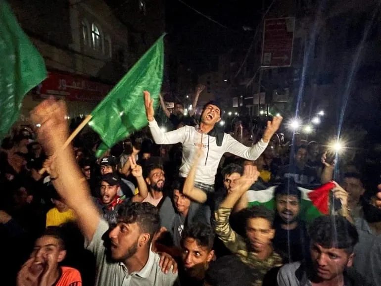 Pada pukul 2 pagi waktu setempat, saat gencatan senjata mulai berlaku, kehidupan yang hiruk pikuk kembali ke jalan-jalan di Gaza. Orang-orang keluar dari rumah mereka, beberapa meneriakkan “Allahu Akbar” atau bersiul dari balkon. Banyak yang menembak ke udara, merayakan gencatan senjata.