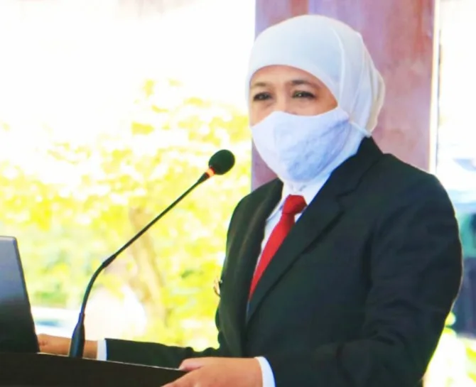 TUBAN-KEMPALAN: Gubernur Jatim Khofifah Indar Parawansa untuk kali kedua dinyatakan terkonfirmasi positif Covid-19, Jumat (25/6). Khofifah yang seharusnya hadir langsung dalam sertijab Bupati Tuban Aditya Halindra Faridzky dan Wakil Bupati Riyadi di DPRD Kabupaten Tuban pada Jumat (25/6) pagi ini, secara mendadak dibatalkan dan hanya hadir secara virtual untuk menyampaikan sambutannya juga melalui virtual.