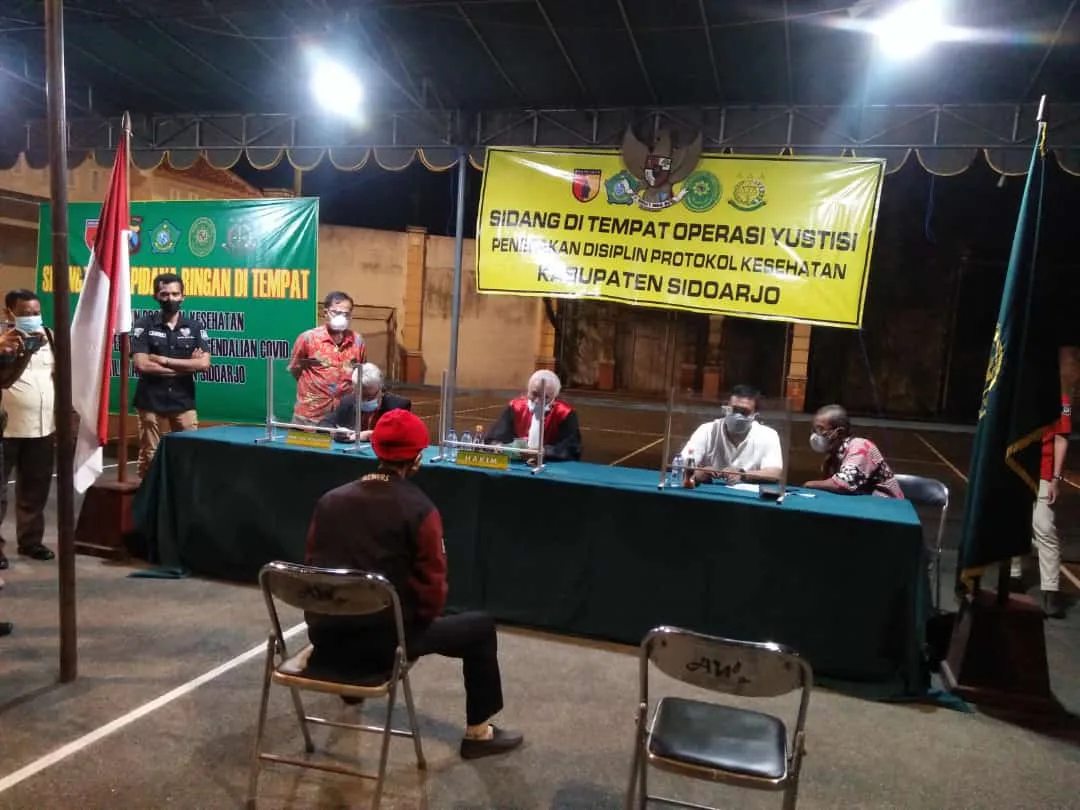 Pelaksanaan Operasi Yustisi ini didasari dengan Inpres Nomor 06 Tahun 2020 tentang peningkatan disiplin dan penegakan prokes dalam pengendalian dan pencegahan covid-19, kegiatan dimulai pada pukul19.50 WIB diawali dengan Apel kesiapan pasukan gabungan antara TNI-Polri, Sat Pol PP, dan PN Kab. Sidoarjo dengan Kepala PAM Kompol Drs. H. Bunari, Kapolsek Waru di halaman pendopo Kabupaten Sidoarjo dalam keadaan lancar dan terkendali.