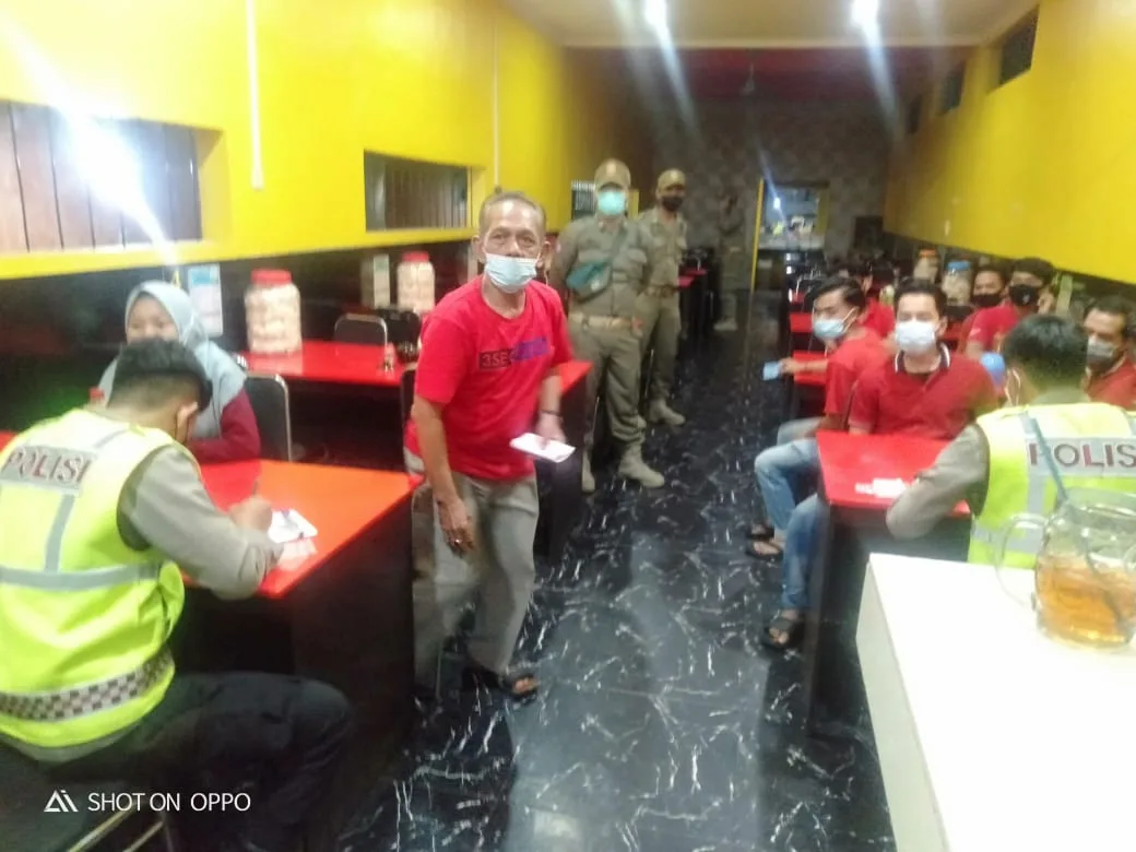 Kegiatan Yustisi kali ini dibagi menjadi 3(tiga) kelompok, yaitu kelompok pertama di depan pintu gerbang, sedangkan kelompok 2 dan 3 melakukan hunting system dengan arahan jika ada warung atau usaha yang tidak taat segera ditilang ditempat dan tetap mengedepankan protokol kesehatan.