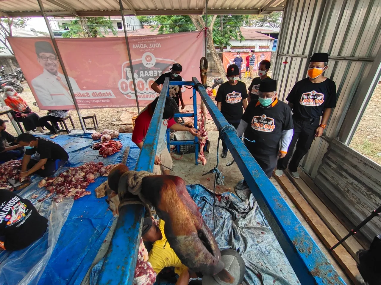 KEMPALAN: Hari raya Idul Qurban tahun ini diliputi dengan suasana keprihatinan. Pandemi Covid-19 tak hanya membatasi ruang gerak, namun juga mengancam kondisi ekonomi masyarakat. Karenanya, PKS Jatim membagikan ratusan ribu paket qurban kepada masyarakat, khususnya untuk masyarakat, khususnya yang terdampak Covid-19.