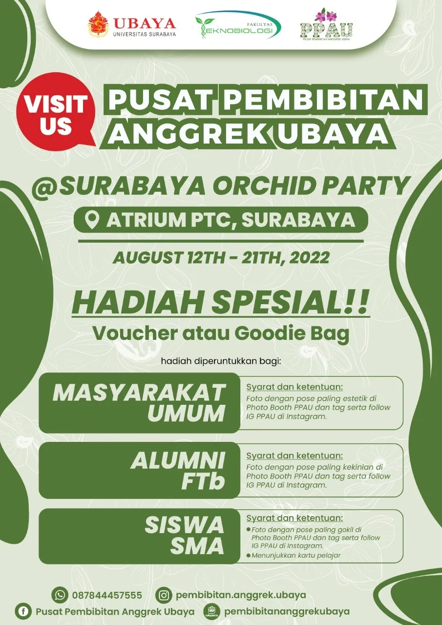 Kunjungi Pusat Pembibitan Anggrek UBAYA di Atrium PTC Surabaya 12-21 Agustus 2022