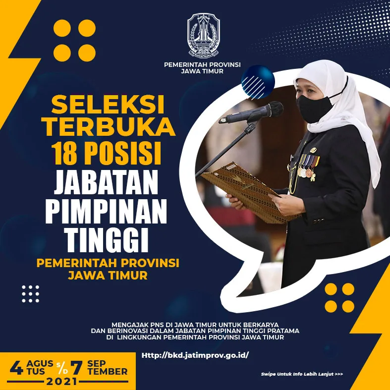 “Jadi kami pastikan bahwa dalam proses seleksi terbuka ini dilakukan dengan fair dan tidak dikenakan biaya apapun. Kami harapkan semua proses bisa berjalan lancar sesuai tahapan yang ada,” tutup gubernur perempuan pertama di Jatim ini.