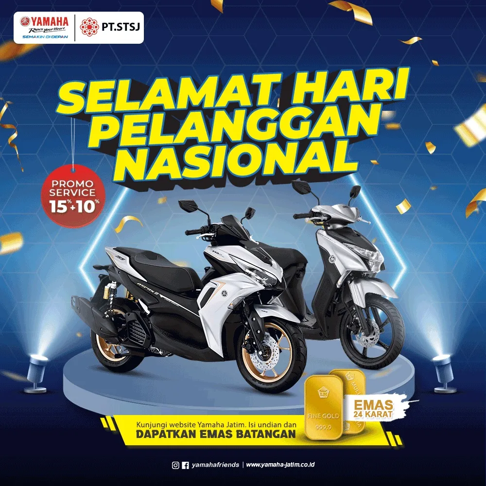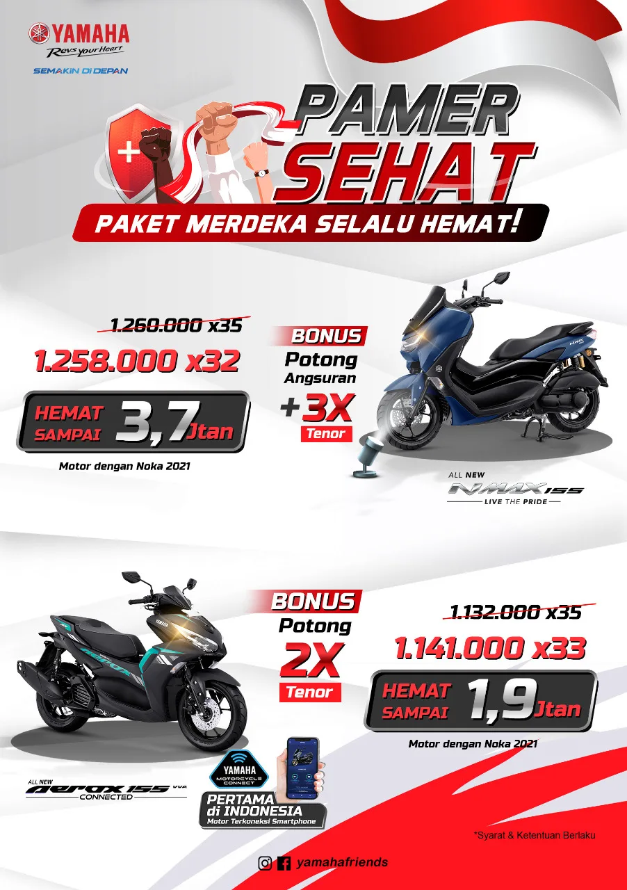 Yamaha Jatim mengajak pelanggan setia Yamaha untuk menikmati Pamer Sehat (Paket Merdeka Selalu Hemat). Selain menjaga kondisi tubuh sehat, kondisi dompet pun juga harus menjadi perhatian. Yamaha Jatim memberikan potongan harga menarik bagi pelanggan setia selama bulan Agustus.