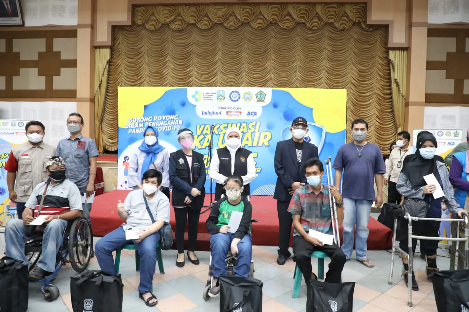 Guna memastikan pelaksanaan vaksinasi bagi para difabel berjalan dengan lancar, Gubernur Jawa Timur Khofifah Indar Parawansa meninjau langsung pelaksanaan vaksinasi bagi para difabel yang diselenggarakan IKA Unair bersama BK3S (Badan Koordinasi Kesejahteraa Sosial) di Gedung BK3S Jl. Raya Tenggilis Timur, Surabaya, Minggu (29/8).