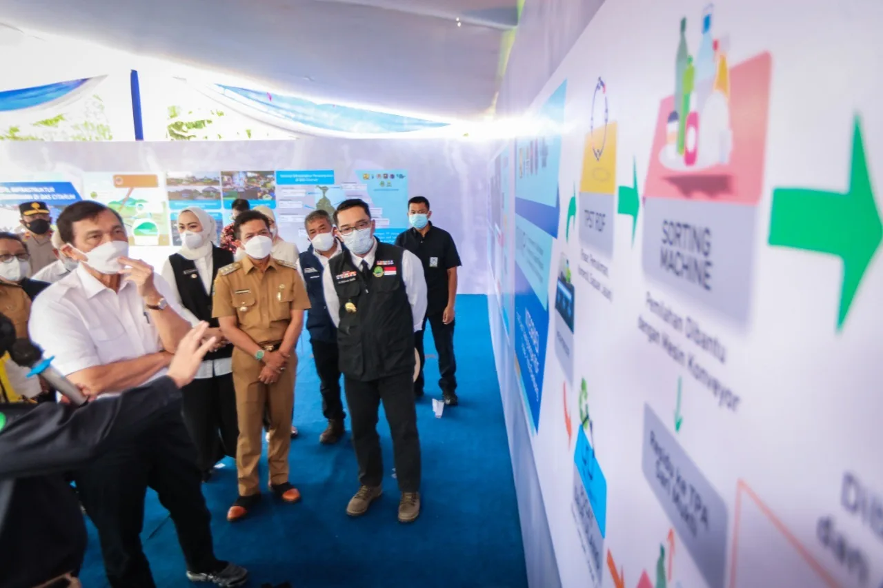 BANDUNG, KEMPALAN – Bupati Bandung Dadang Supriatna mendampingi Menteri Koordinator Bidang Kemaritiman dan Investasi (Marves) RI Luhut Binsar Panjaitan, saat mengunjungi Tempat Pembuangan Sampah Akhir (TPSA) Cicabe Kota Bandung, Selasa (7/9/21). Kunjungan kerja Menko Marves tersebut juga untuk meninjau progres Program Citarum Harum.