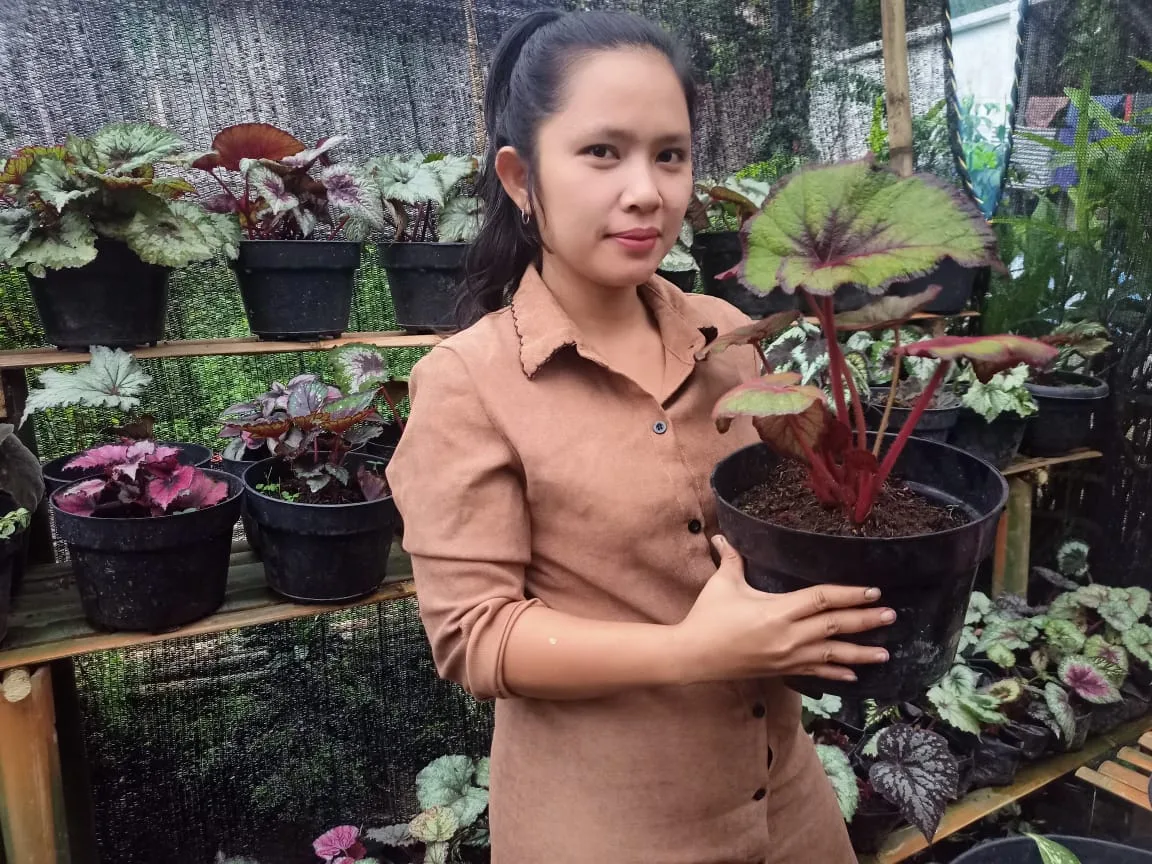 Di halaman Pelawi Nursery miliknya, Aslina punya hampir 2 ribu polibag Begonia Sultan. “Lebih dari 1.500 polibag yang siap jual,” katanya, serius.