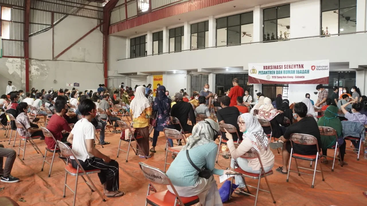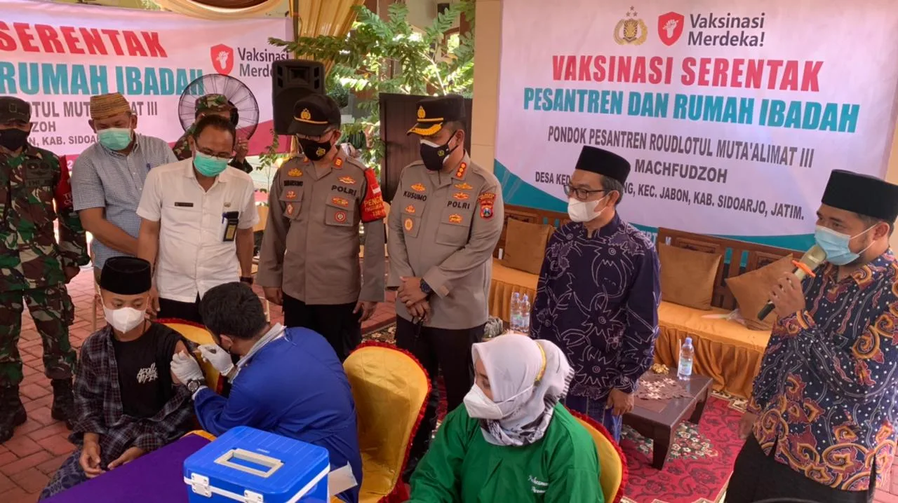 Rabu (8/9/2021), kegiatan Vaksinasi Merdeka serentak pesantren dan rumah ibadah, yang dipantau langsung Kapolresta Sidoarjo Kombes Pol. Kusumo Wahyu Bintoro bersama pejabat utama Polresta Sidoarjo, jajaran Kodim 0816 Sidoarjo, puskesmas dan forkopimka setempat berlangsung di Pondok Pesantren Roudlotul Muta’alimat III Al Machfudzoh, Kedungcakring, Jabon, Sidoarjo. Serta vaksinasi juga diadakan di Klenteng TITD Tjong Hok Kiong, Sidoarjo.