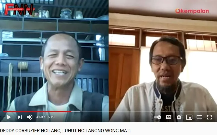 Gerung memakai celana pendek dan hem lengan pendek sambil duduk di teras rumah yang terbuka. Kelihatannya teras itu adalah teras rumah Gerung di Bojong Koneng, Bogor, yang sedang disomasi oleh Sentul City untuk segera dibongkar dan dikosongkan.