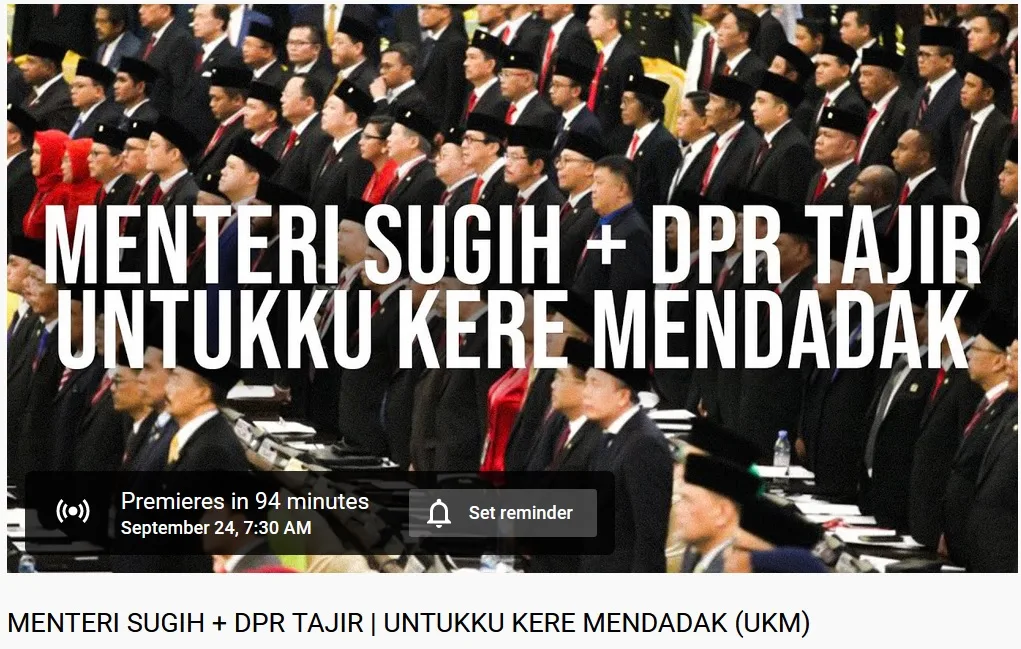 Video lainnya berdurasi 33 detik, menggambarkan belasan anak-anak muda yang duduk bersila di lantai, mirip jamaah pengajian. Tapi, anak-anak muda itu menutup dua telinga semuanya. Suara audio terdengar mirip pidato Presiden Jokowi yang mengatakan di kantongnya ada uang Rp11 ribu triliun.