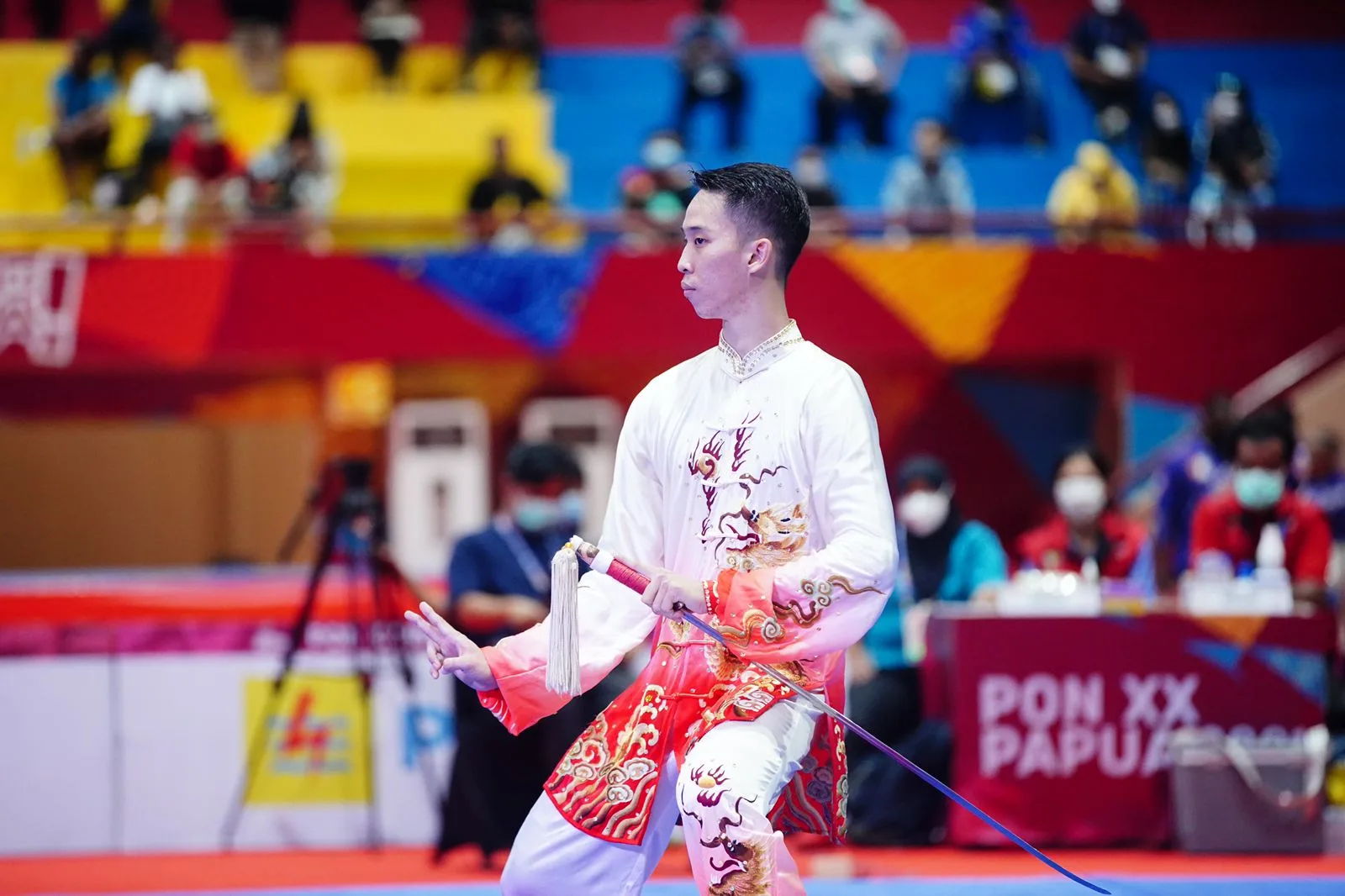 MERAUKE-KEMPALAN: Cabang Olahraga Wushu nomer Taulo Taiji Jian dan Taulo Taiji Quan Putra putri Sumbang 2 medali emas untuk kontingen Jawa Timur. Dua medali emas itu di persembahkan Bobie Valentinus Gunawan dan Elisya Mellynar.