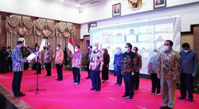 SURABAYA-KEMPALAN: Pemkot Surabaya melalui Dinas Pendidikan (Dispendik) Kota Surabaya menggelar Leadership Virtual Camp selama dua hari, 1-2 November 2021. Acara yang digelar di Graha Sawunggaling Komplek Gedung Pemkot Surabaya itu diikuti oleh semua pengurus Osis jenjang SMP se-Kota Surabaya, baik negeri maupun swasta. Khusus yang hadir ke Graha Sawunggaling hanya dibatasi 100 pelajar, kemudian sisanya sekitar 500 pelajar pengurus Osis mengikuti acara itu via virtual.