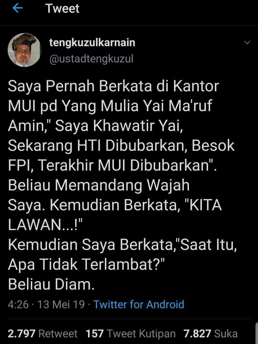 Ternyata apa yang diprediksi Ustadz Zul, menemui kebenaran. Setidaknya setelah HTI dibubarkan. FPI di akhir Desember 2020 pun dibubarkan… Setelah itu, muncul “serangan” terhadap MUI dengan wacana pembubarannya.