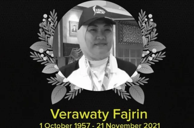 KEMPALAN: INNALILLAHI wa inna ilaihi rojiun. Telah berpulang ke Rahmatullah, legenda bulutangkis putri kita, Hj. Verawaty Fajrin, Ahad (21/11/2021) pukul o6.58, di rumah sakit Dharmais. Vera wafat setelah bertarung dengan kanker yang insyaa Allah menjadi penggugur dosa-dosanya.