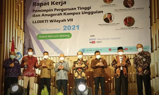 Penghargaan diberikan Kepala LLDIKTI Wilayah VII, Prof. Dr. Ir. Soeprapto, DEA. pada event raker pemimpin perguruan tinggi swasta (PTS) yang diadakan oleh Lembaga Layanan Pendidikan Tinggi (LL Dikti) Wilayah VII Jatim di Grand Mercure Kota Malang, Rabu (24/11/2021).