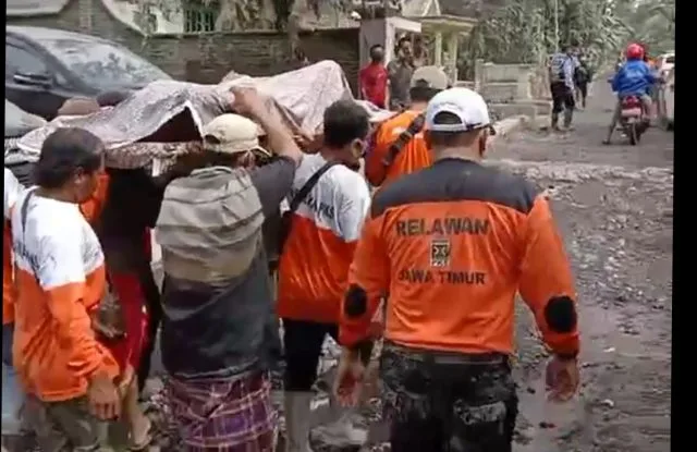 Langit hitam pekat. Sebagian wilayah Lumajang menjadi gelap gulita tidak ada cahaya. Orang-orang panik berlarian menyelamatkan diri. Anak-anak lari dan berteriak ketakutan dengan wajah penuh horor. Teriakan kesakitan terdengar dari korban yang tersambar gulungan debu panas.