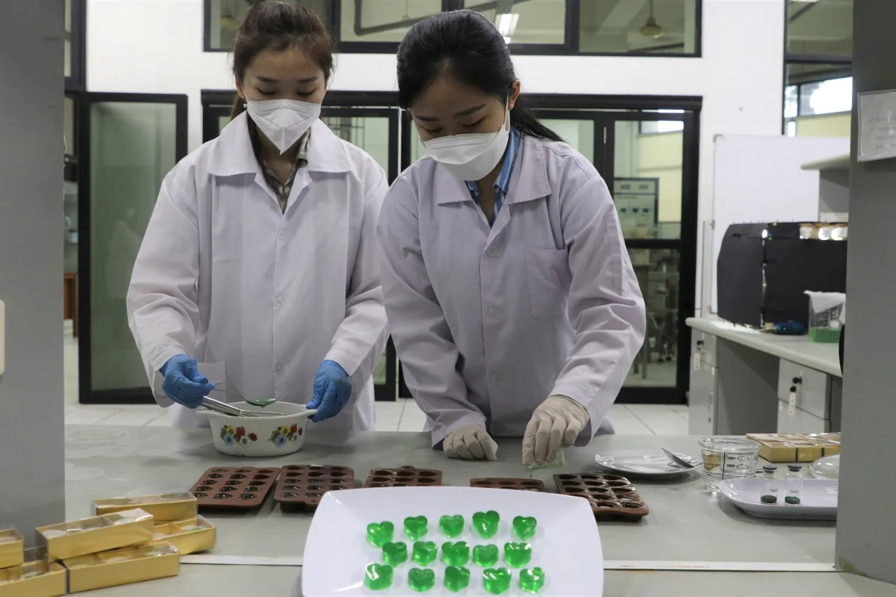 “Kami tambahkan kandungan gula supaya menimbulkan rasa manis dan menutupi bau tidak sedap. Gummy candy spirulina adalah permen yang mempunyai additional nutrisi karena ada proteinnya,” terangnya.