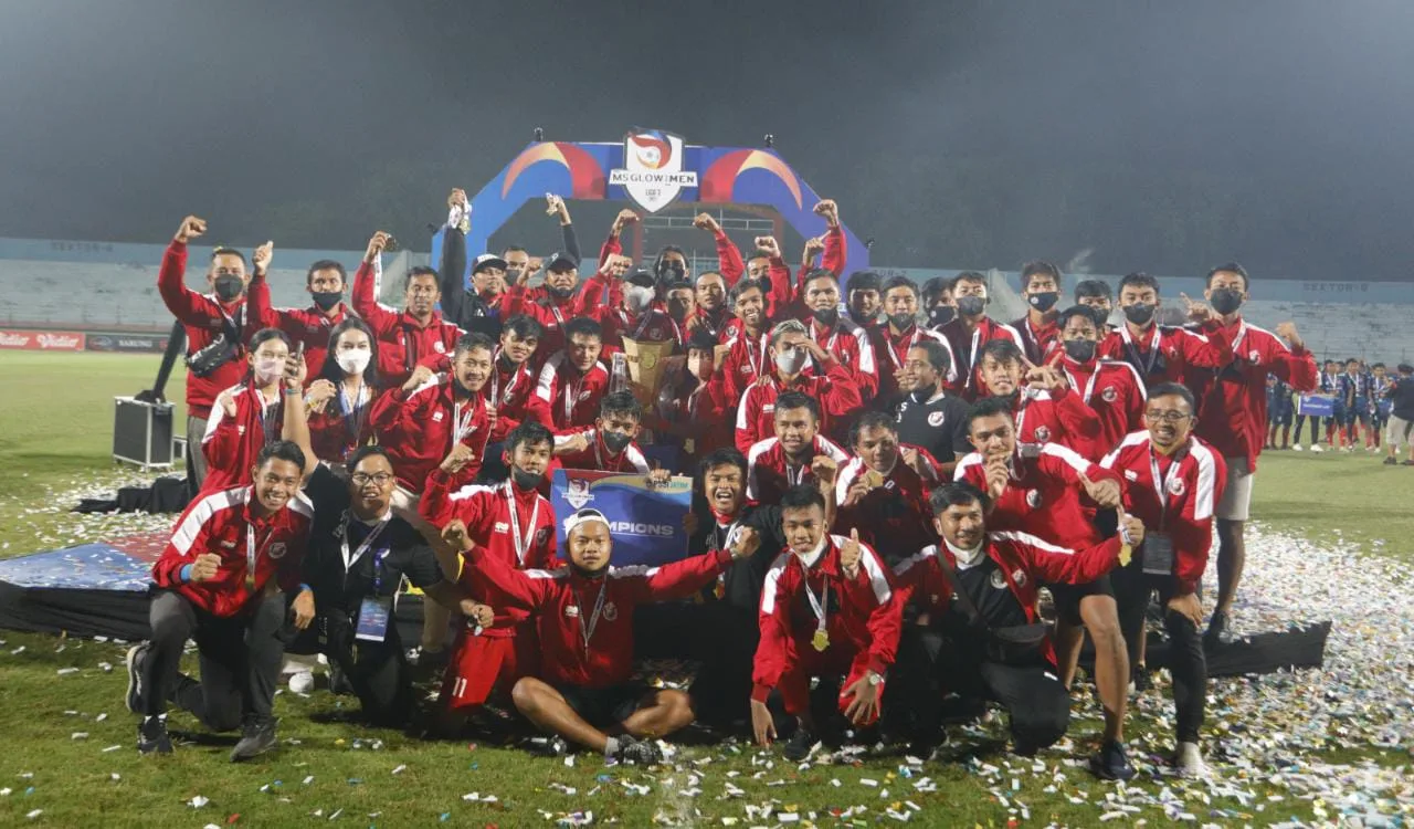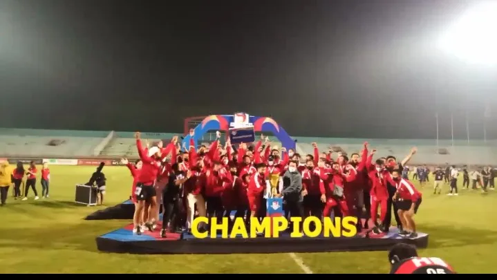 SIDOARJO-KEMPALAN : Tim NZR Sumbersari sukses menjuarai Liga 3 MS Glow for Men PSSI Jatim 2021 setelah meraih kemenangan dramatis atas Persedikab di final, Kamis 16 Desember 2021 di Stadion Gelora Delta, Sidoarjo.