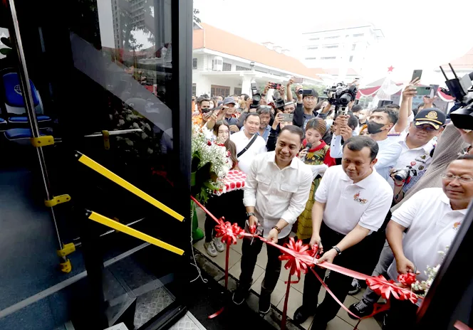 Eri Cahyadi bersama Kemenhub Launching Bus Listrik di Surabaya