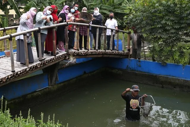 KEMPALAN: Pemerintah Kota (Pemkot) Surabaya turun tangan menangani temuan adanya ikan-ikan yang mengapung mati di Waduk V SIER. Bahkan, jajaran Dinas Lingkungan Hidup Kota Surabaya langsung terjun ke lokasi mengambil sampel air waduk untuk dilakukan uji laboratorium.