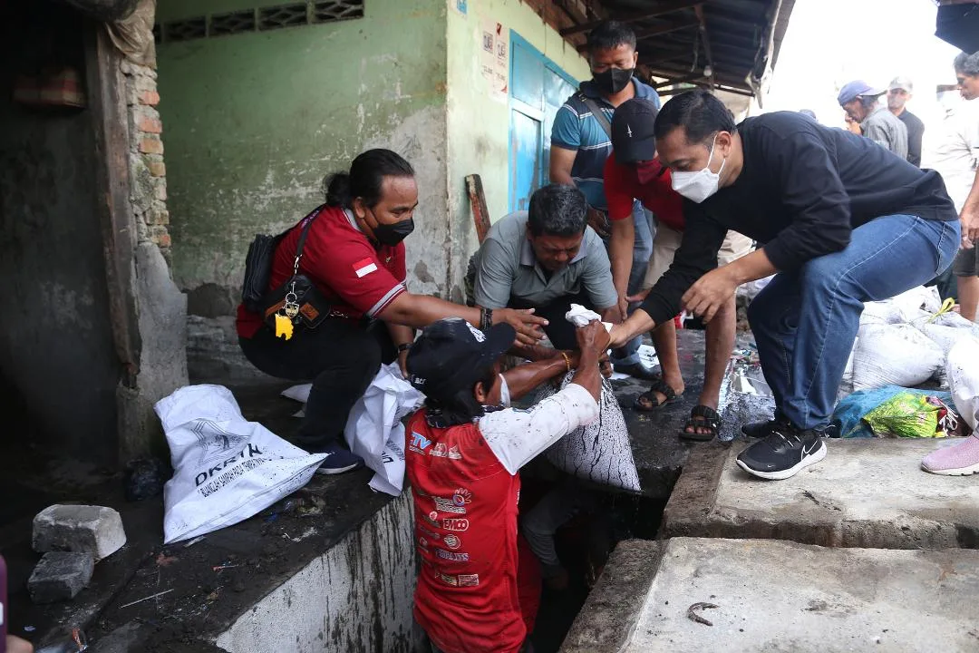 Di lokasi yang pertama, tepatnya di Jalan Nyamplungan Balokan dan Jalan Nyamplungan Gang XII, Kelurahan Pegirian, Kecamatan Semampir, Wali Kota Eri bersama jajarannya turun langsung mengecek saluran. Di kampung tersebut, ia mendengarkan curhatan warganya.