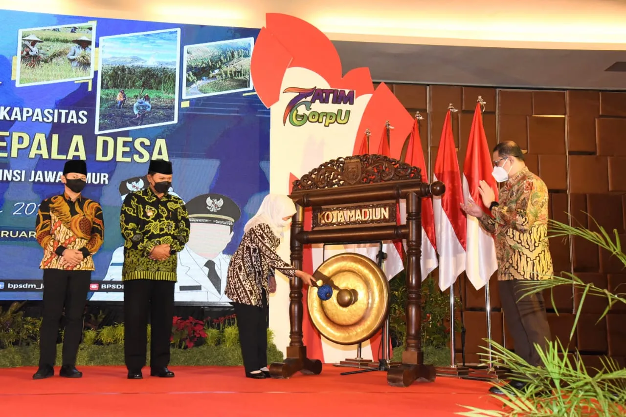 Hal tersebut disampaikan Khofifah saat membuka Diklat Peningkatan Kapasitas Sumber Daya Manusia (SDM) bagi Kepala Desa Pemerintah Provinsi Jawa Timur Tahun 2022 Angakatan I dan II di Ballroom Hotel Aston Madiun, Selasa (15/2) pagi.