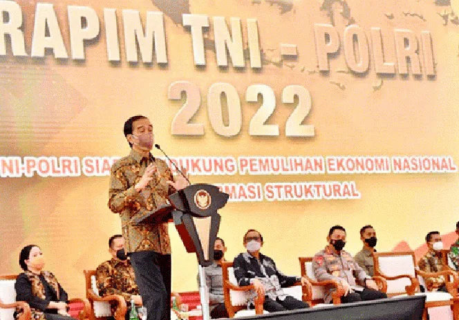 Berpidato dalam pembukaan Rapimnas TNI-Polri di Mabes TNI, Cilangkap, Jakarta Timur, nada Jokowi tinggi dan gesture tubuh dan mimik wajahnya menahan emosi. Acara ini dihadiri semua pimpinan nasional, seperti Ketua MPR Bambang Soesatyo, Ketua DPR Puan Maharani, Ketua Mahkamah Agung Muhammad Syarifuddin, dan Ketua Mahkamah Konstitusi Anwar Usman.
