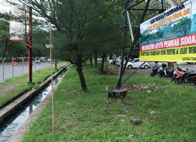 SIDOARJO-KEMPALAN: Langkah Pemkab Sidoarjo yang menjadikan kawasan Jalan Taman Pinang Indah-Gading Fajar menjadi kawasan bebas sampah mendapat dukungan dari masyarakat Sidoarjo. Dukungan itu diantaranya datang dari warga Taman Pinang Indah. Mereka memasang spanduk bertuliskan “Kami warga perumahan Taman Pinang Indah (TPI) dan Taman Pinang Asri mendukung upaya Pemkab Sidoarjo menciptakan lingkungan yang tertib dan asri bebas PKL”.