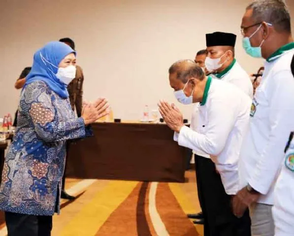 Pada kesempatan tersebut, Gubernur Khofifah mengajak segenap jamaah yang hadir untuk bersama-sama mendoakan keselamatan bangsa Indonesia, khususnya masyarakat Jawa Timur. Utamanya agar pandemi Covid-19 bisa segera diangkat dari Bumi Indonesia khususnya Jawa Timur oleh Allah SWT.