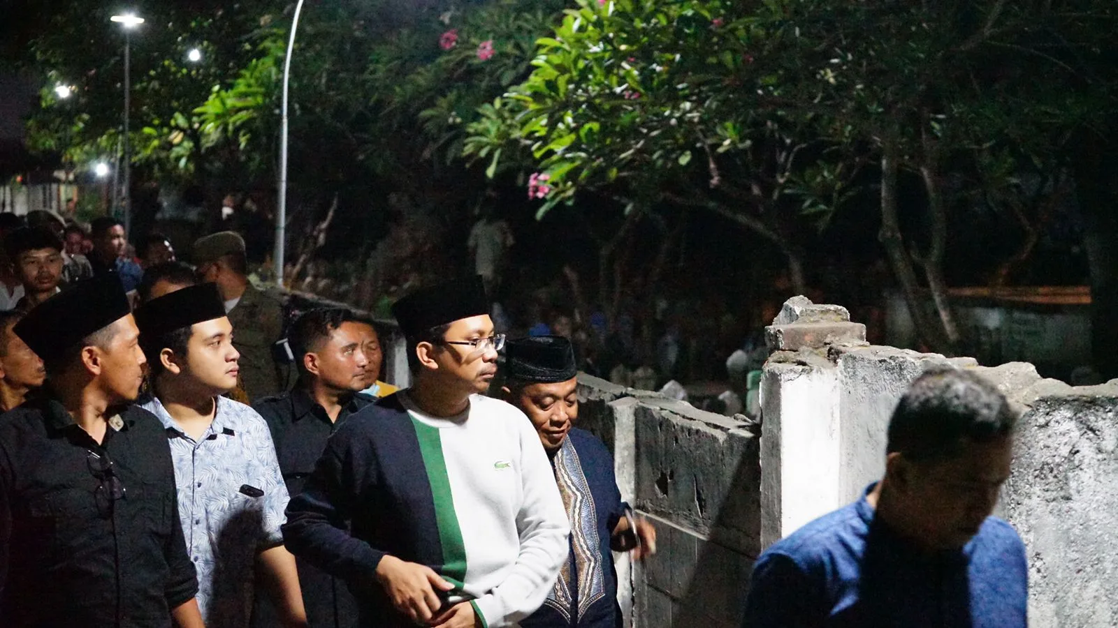Bersama ratusan peziarah dari berbagai wilayah, Gubernur Khofifah mengumandangkan tahlil, sholawat dan dzikir yang menambah suasana khusyu’ pada peringatan Haul Agung Sunan Ampel ke 545 di kompleks makam Sunan Ampel di Surabaya, Jumat (18/3) malam.