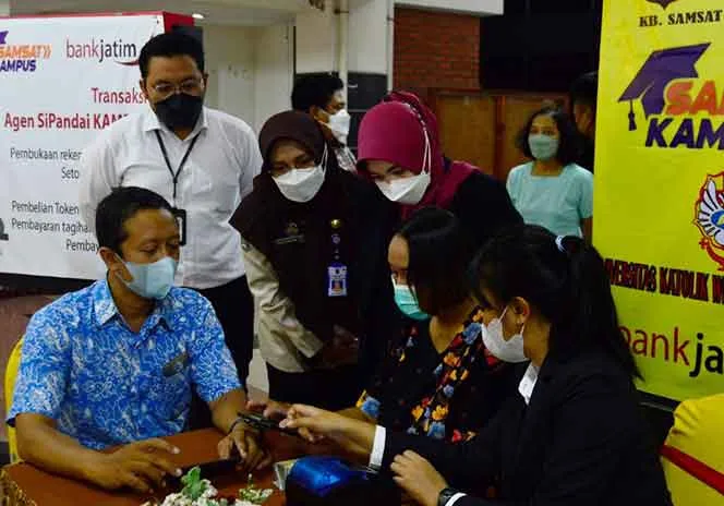 SURABAYA-KEMPALAN: Guna memudahkan pelayanan pembayaran pajak kendaraan bermotor, Bank Jatim dan Badan Pendapatan Daerah Provinsi Jawa Timur, bekerja sama dengan Universitas Katolik Widya Mandala Surabaya (UKWMS) membuka Pelayanan Pembayaran Pajak Kendaraan Bermotor. Bertempat di UKWMS Kampus Dinoyo, Samsat Kampus dinaungi langsung oleh Koperasi Karyawan Widya Mandala (Kopkar WM).