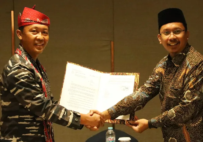 SIDOARJO-KEMPALAN: Setelah beberapa waktu lalu Bupati Sidoarjo Ahmad Muhdlor menemui KASAL Laksamana TNI Yudo Margono di Mabes TNI AL di Jakarta untuk membicarakan pemanfaatan lahan Aloha yang akan dibangun Fly Over dan Pelebaran Jalan pertigaan Bangah. Hari ini Kamis, (16/6/2022) di Hotel Swiss Bell In Juanda, pihak TNI AL melalui Asisten Logistik Laksamana Muda TNI Puguh Santoso menyerahkan surat persetujuan pemanfaatan lahan kepada Bupati Sidoarjo Ahmad Muhdlor.