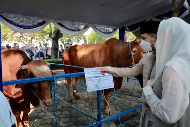 “Karena setelah kita lihat, banyak di masjid itu, ada satu masjid yang cuma ada satu kambing, dua kambing, menurun dari sebelum pandemi,” kata Wali Kota Eri Cahyadi usai menunaikan Salat Idul Adha di Taman Surya, Balai Kota Surabaya, Minggu (10/7/2022).