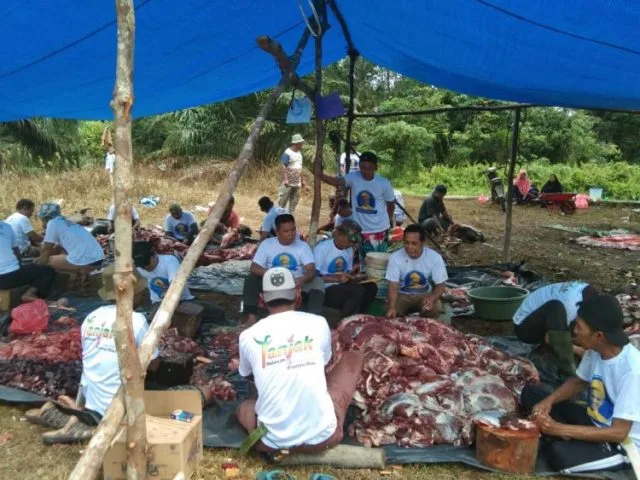 Kaus bergambar Anies Baswedan memakai Tanjak sebagai simbol kebesaran orang Melayu tersebut bahkan menjadi penyemangat masyarakat dan panitia yang terlibat dalam pemotongan hewan kurban.
