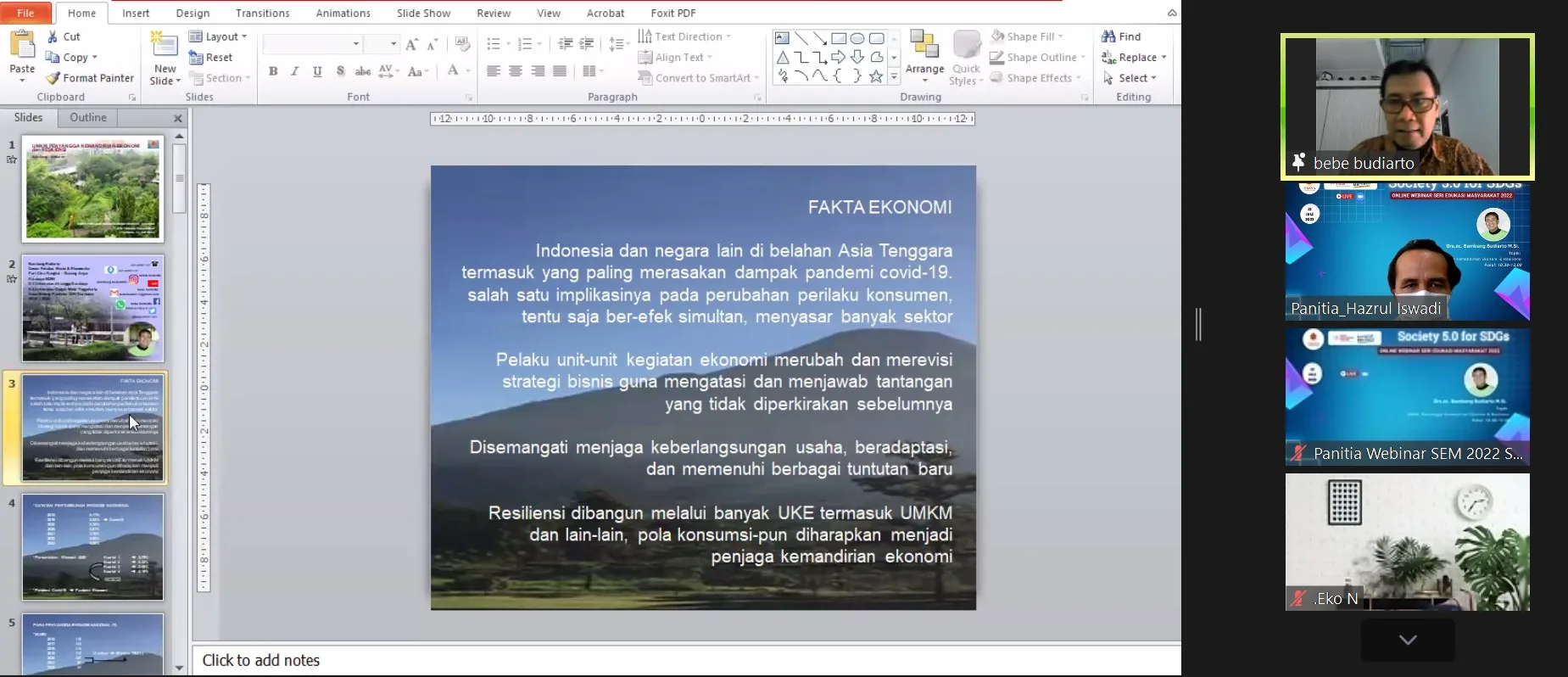 Seri 1 dari 54 seri yang direncanakan untuk SEM Ubaya 2022 dilangsungkan pada hari Selasa, tanggal 12 Juli 2022 dengan pembicara Drs.ec. Bambang Budiarto M.Si. Pakar ekonomi dari Fakultas Bisnis dan Ekonomika Ubaya tersebut mengambil topik UMKM, Penyangga Kemandirian Ekonomi & Resiliensi. Seri 1 yang diselenggarakan dengan media zoom tersebut dilaksanakan pada pukul 10.30 sampai dengan 12.00 WIB. Pada Seri 1 ini juga dibuka dan dilakukan sambutan oleh Ketua LPPM Ubaya Prof. Suyanto.