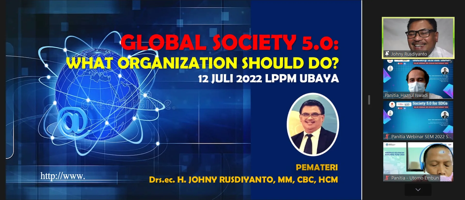 SEM Ubaya 2022 dapat diikuti secara gratis oleh semua masyarakat Indonesia. Seri-seri berikutnya untuk SEM Ubaya 2022 dapat dilihat di web LPPM Ubaya www.lppm.ubaya.ac.id atau dengan menghubungi narahubung Tang Hamidy +62 877 5282 8216 atau Utomo +62 858 5088 8810. (Hazrul Iswadi)