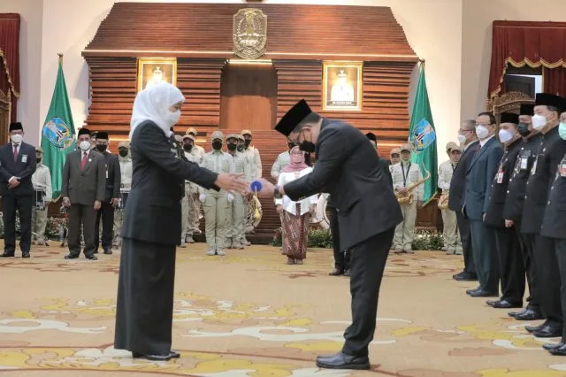 Adhy Karyono yang sebelumnya menjabat staff ahli Kementerian Sosial RI itu dilantik sebagai Sekdaprov Jatim oleh Gubernur Jatim Khofifah Indar Parawansa di Gedung Negara Grahadi Surabaya, Jumat (15/7). Adhy Karyono dilantik berdasarkan Keppres RI No.79/TPA2022 tentang Pemberhentian dan Pengangkatan dari dan Dalam Jabatan Pimpinan Tinggi Madya Pemprov Jatim tertanggal 24 Juni 2002. Pembacaan Keppres dilakukan oleh Kepala BKD Provinsi Jawa Timur Indah Wahyuni.