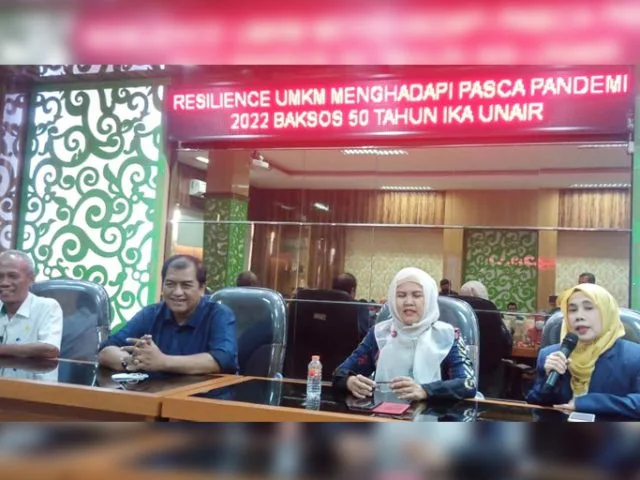 SIDOARJO-KEMPALAN: Dalam rangka memperingati 50 Tahun Ikatan Alumni Univeritas Airlangga (Ika Unair), Pengurus Cabang Ika Unair Sidoarjo menggelar pelatihan untuk UMKM, Rabu, 26 Oktober 2022.