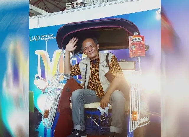 SOLO-KEMPALAN: Mengunjungi stand Universitas Muhammadiyah Ahmad Dahlan (UAD) Yogyakarta di arena pameran Muktamar Muhammadiyah dan Aisyiyah di De Colomadu, Solo, saya disuguhi pengalaman baru: Naik becak listrik.