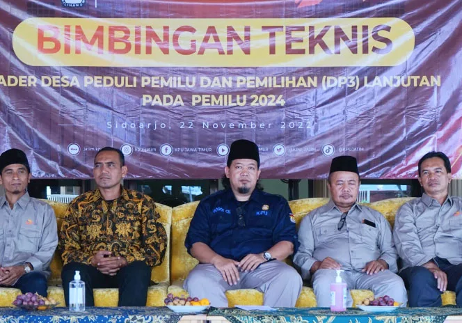 SIDOARJO-KEMPALAN: Dalam rangka mewujudkan komitmen meningkatkan partisipasi pemilih pada Pemilihan Umum (Pemilu) Tahun 2024 di wilayah Jawa Timur, Komisi Pemilihan Umum Provinsi Jawa Timur (KPU Jatim) kembali membekali 25 kader Desa Peduli Pemilu dan Pemilihan (DP3) di Desa Bakung Pringgodani, Kecamatan Balongbendo, Kabupaten Sidoarjo dengan Bimbingan Teknis (Bimtek) Lanjutan.
