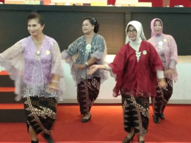 Hadir memberi dukungan suaminya, Mayor Marinir Bayu Ario Nusantoro dan anggota Komunitas Kebaya Indonesia (KKI) yang memenuhi ruangan ujian. Suasananya pun terlihat beda dan indah.
