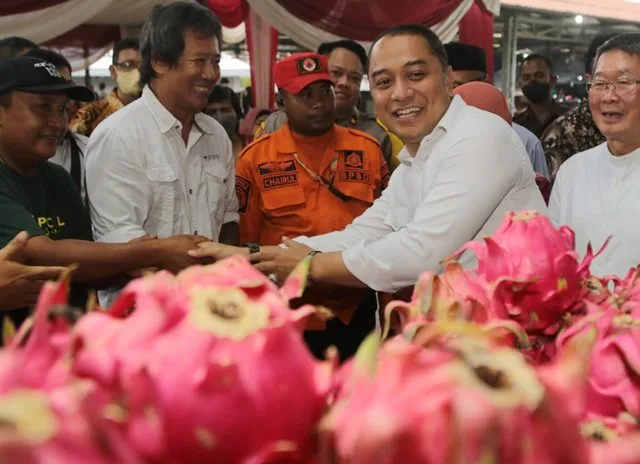 “Berarti, nanti seluruh pasar di Surabaya itu ngambilnya (kulakan) ya di pasar induk. Sehingga bisa untuk mencegah terjadinya inflasi,” kata Wali Kota Eri.